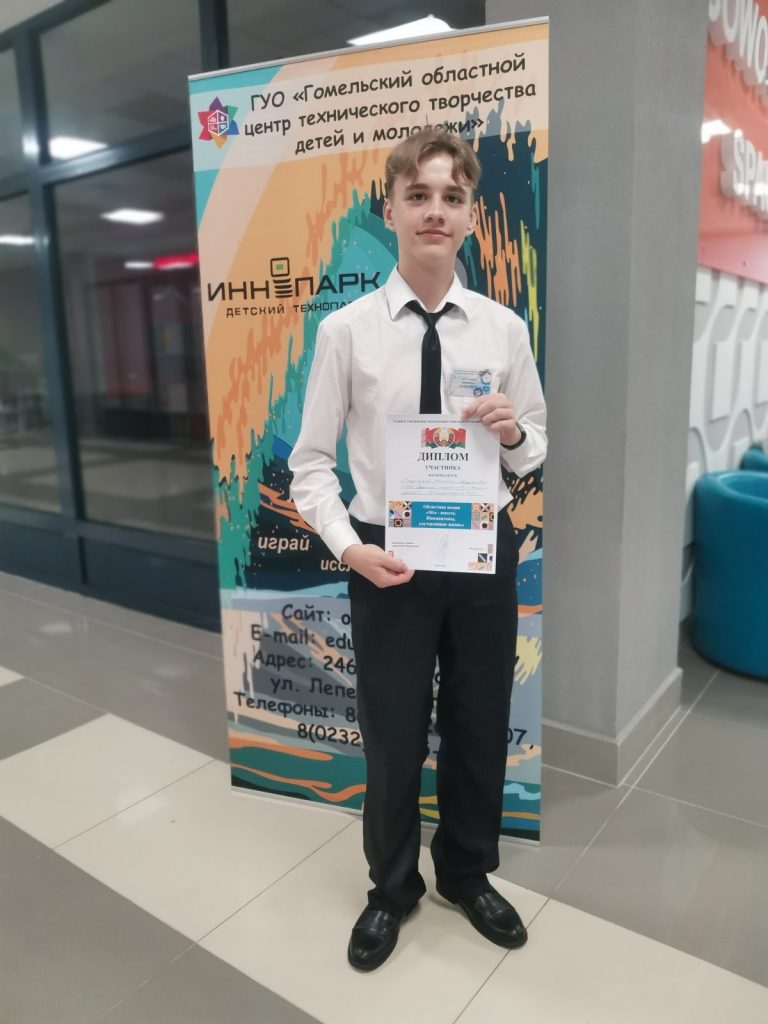 17 сентября учащийся 9 «А» класса Стугарев Никита представлял инновационный социальный проект «Птицефабрика 2.0: условия под контролем», разработанный под руководством учителя математики Савицкой В.О. на выставке проектов, направленных на обеспечение жизнедеятельности и улучшения жизни граждан Республики Беларусь, который прошел в г.Гомеле в рамках акции «Мы — вместе. Инициативы, улучшающие жизнь». Для экспертной оценки проектов были приглашены представители отраслей экономики и производства, высших учебных заведений г.Гомеля. В областном конкурсе проектов по робототехнике данный проект был удостоен дипломом 3 степени.