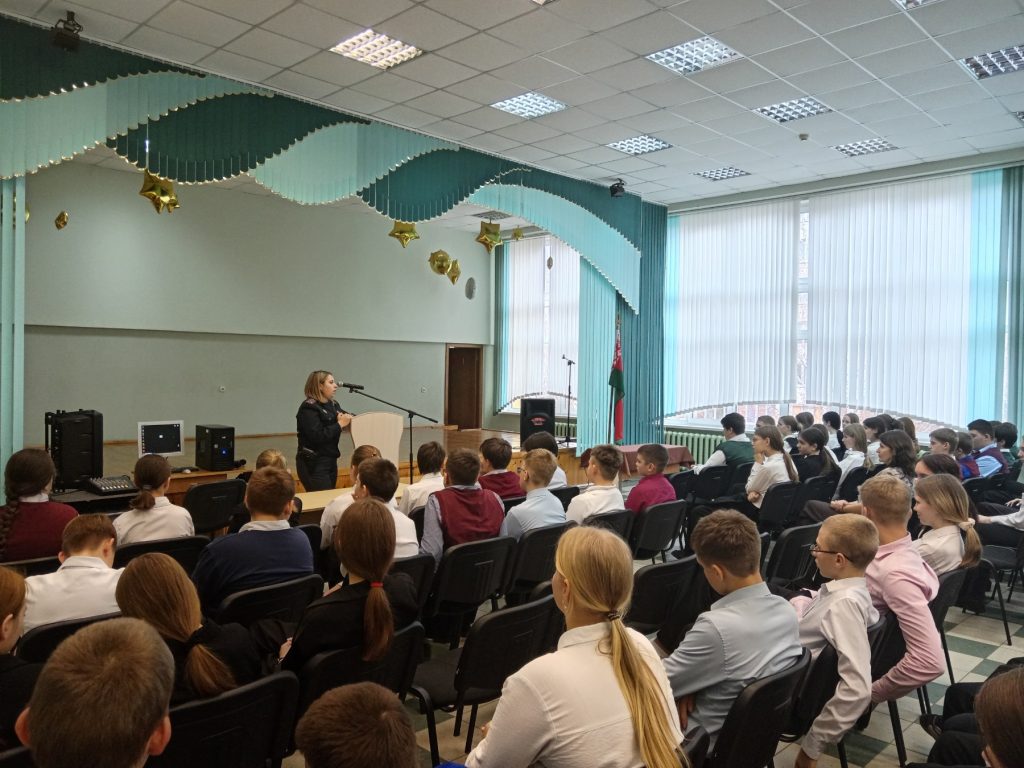 12 ноября с учащимися средней школы №2 г. Жлобина встретилась инспектор ИДН ОВД Жлобинского райисполкома Дулуб Екатерина Сергеевна. Цель встречи-профилактика противоправного поведения несовершеннолетних. «В последние годы электронные системы курения, известные как вейпы, стремительно набирают популярность среди подростков, вызывая серьезную обеспокоенность как у правоохранительных органов, так и родителей, и педагогов. Часто воспринимаемые как безобидная альтернатива традиционным сигаретам, вейпы, тем не менее, несут в себе значительные риски для здоровья и становятся причиной противоправных действий», — отметила Екатерина Сергеевна. Также внимание инспектора было направлено на то, какую ответственность несут несовершеннолетние за кражи и мелкие хищения, за оскорбление, распитие спиртных напитков, употребление и распространениие наркотических средств, распространение порнографических снимков. Екатерина Сергеевна остановилась на необходимости соблюдения учащимися правил личной безопасности на улице в тёмное время суток, напомнила об обязательном ношении световозвращающих элементов. Ребята с большим вниманием слушали инспектора и получили ответы на все интересующие их вопросы. Хочется надеяться, что данное мероприятие не прошло даром, и ребята запомнили, что их жизнь зависит только от них самих… В заключении, инспектор ИДН пожелала учащимся не допускать правонарушений.