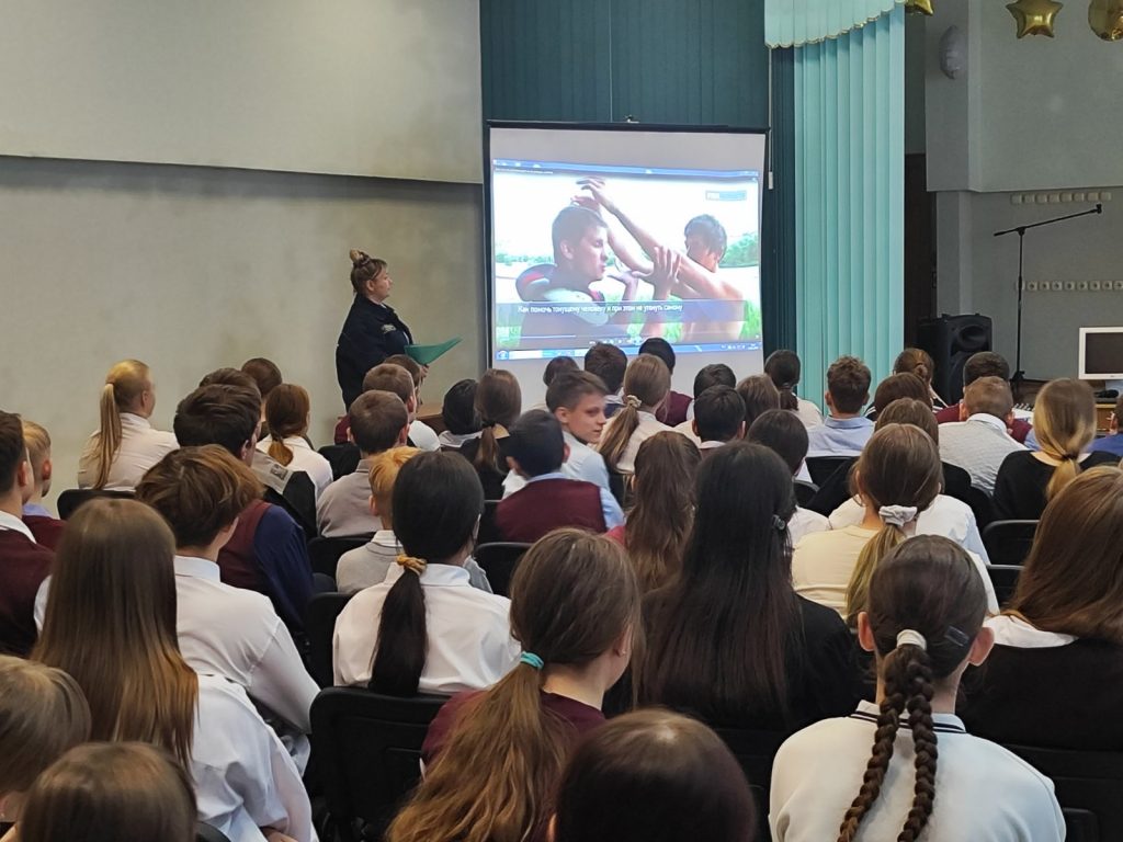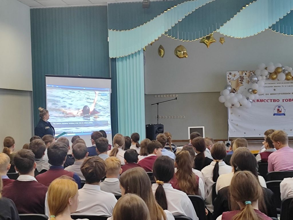 24 ноября в актовом зале школы состоялась встреча учащихся с представителем ОСВОД, которая провела беседу о правилах безопасного поведения на воде, на льду в осенне-зимний период. Для присутствующих продемонстрировали видео ролик о спасении на воде,а также раздали информационные листовки.