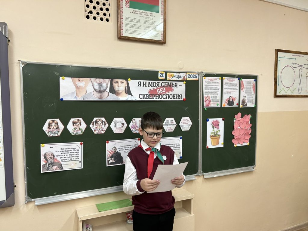 В рамках Недели родительской любви учащиеся средней школы №2 г. Жлобина стали участниками акции «Я и моя семья — без сквернословия», которая прошла в виде мероприятий «Чистота слова- чистота души», «В моей семье говорят красиво».