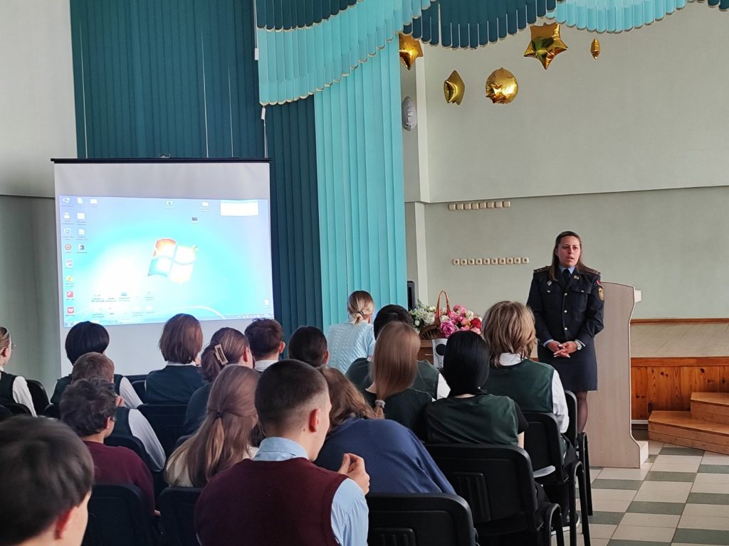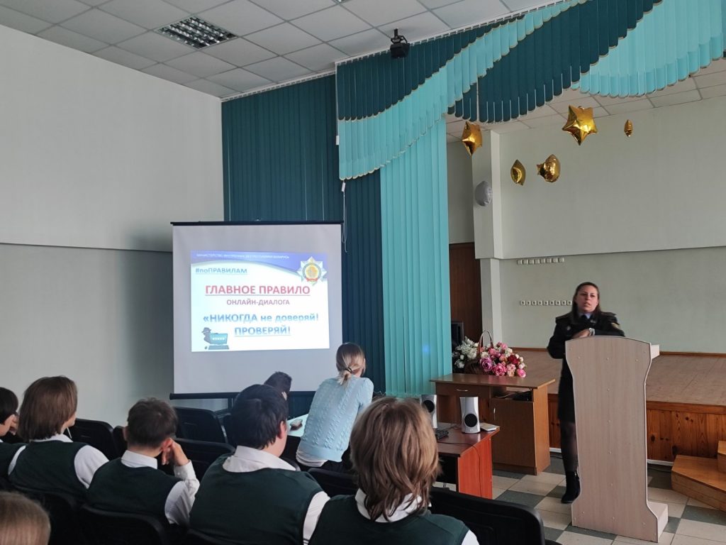 1 апреля в школе прошла встреча учащихся 8-11 классов с инспектором ИДН Дулуб Е.С., в ходе которой была проведена профилактическая беседа по кибербезопасности