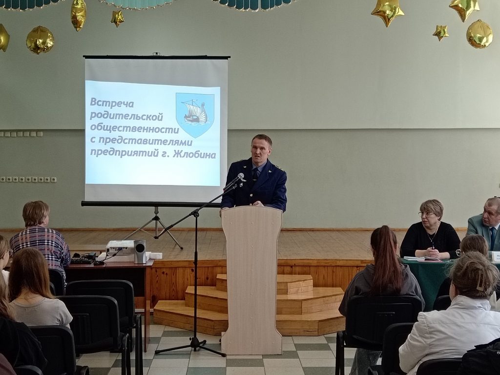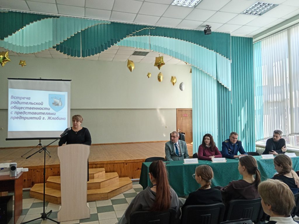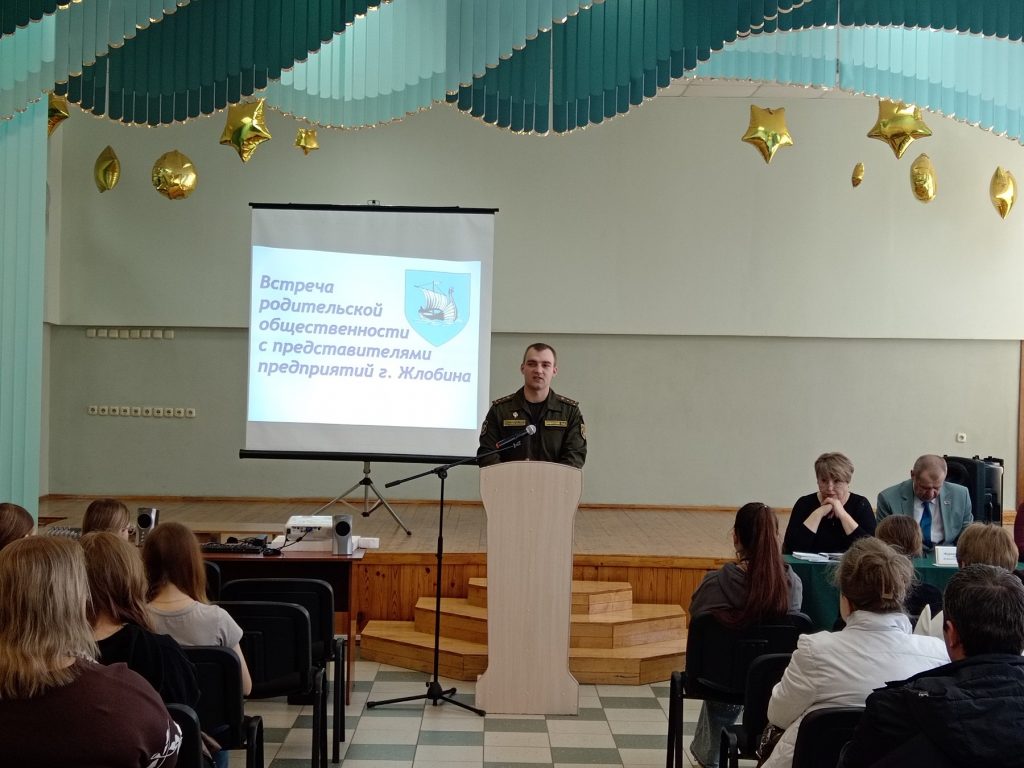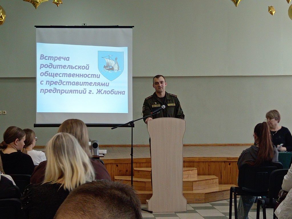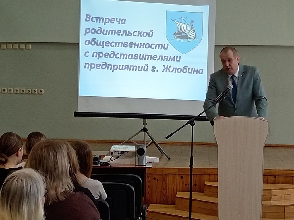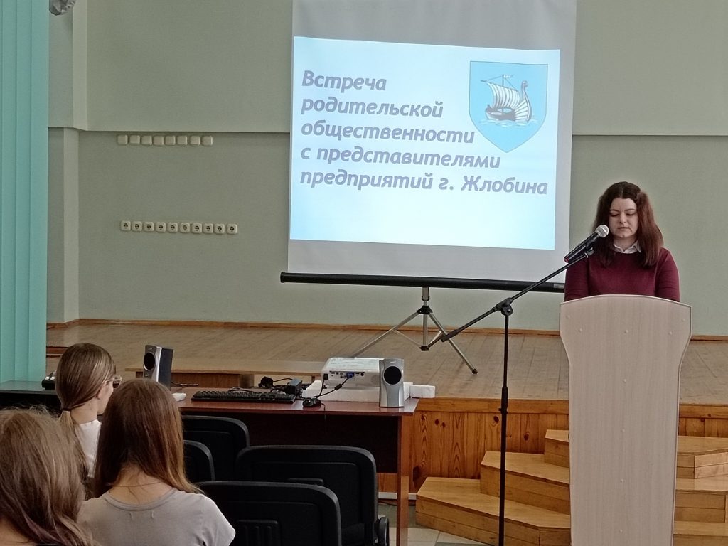 21 марта на базе средней школы №2 г. Жлобина прошла профориентационная суббота для родителей и учащихся средних школ №2,6, гимназии №8 с представителями предприятий и организаций г. Жлобина. На встречу пришли Фурман Сергей Анатольевич, начальник спорта и туризма Жлобинского райисполкома, Василенко Инна Анатольевна, юрист-консультант строительного предприятия «Жлобинметаллургстрой», Ковалев Павел Иванович, заместитель начальника по идеологической работе станции Жлобин, Шибинский Павел Дмитриевич, старший офицер мобилизационного отдела военного комиссариата Жлобинского района, Кудрявцев Никита Васильевич, инженер по охране труда филиала «Жлобинские электрические сети» РУП «Гомельэнерго». Данное мероприятие направлено на знакомство несовершеннолетних, их родителей с производственной базой предприятий города, а также на помощь в выборе карьерного пути будущих абитуриентов.