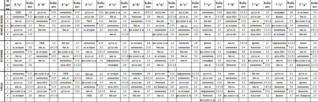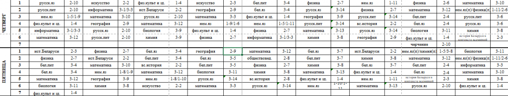 Расписание учебных занятий классов интегрированного обучения и воспитания