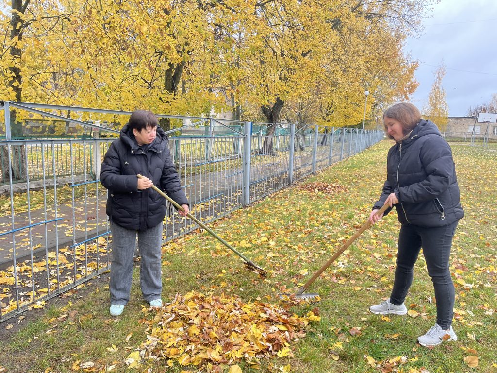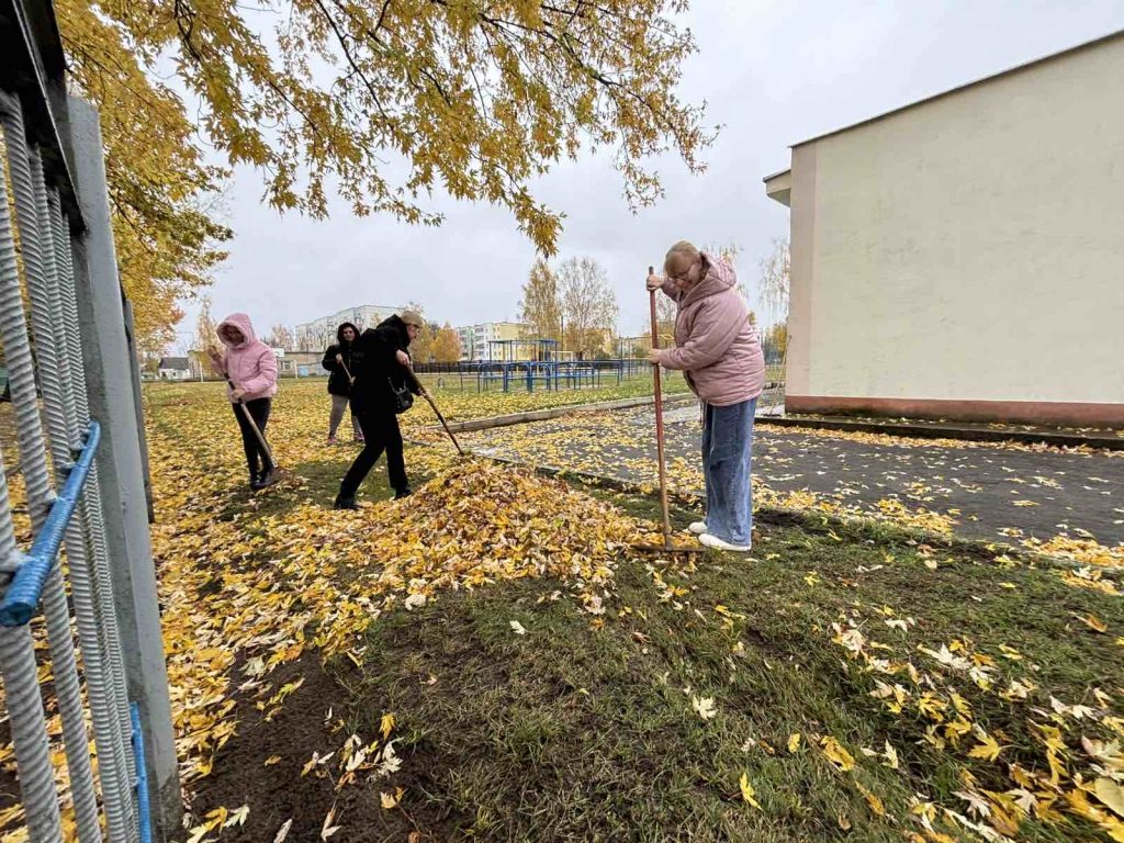 Республиканский субботник 25 Окт,2025 admin В рамках Республиканского субботника работники приняли участие в наведении порядка и уборке листвы на территории школы