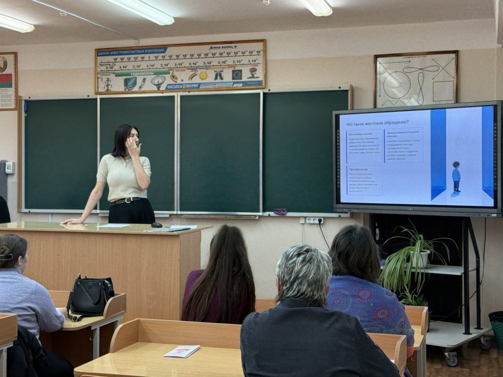 Насыщенным на интересные встречи оказался шестой школьный день, 29 ноября, для учащихся средней школы №2 г. Жлобина и их родителей. Учащиеся 8 классов посетили профориентационное мероприятие по специальности «Общественное питание» в УО «Жлобинский государственный колледж сферы обслуживания»; учащиеся 5-11 классов с огромным удовольствием стали участниками школьного конкурса «Народная зарядка от молодежи школы». Для родителей педагог-психолог Урбонас В.О. провела заседание «Родительского университета» по теме: «Жестокое обращение с детьми: как распознать, предотвратить и помочь».
